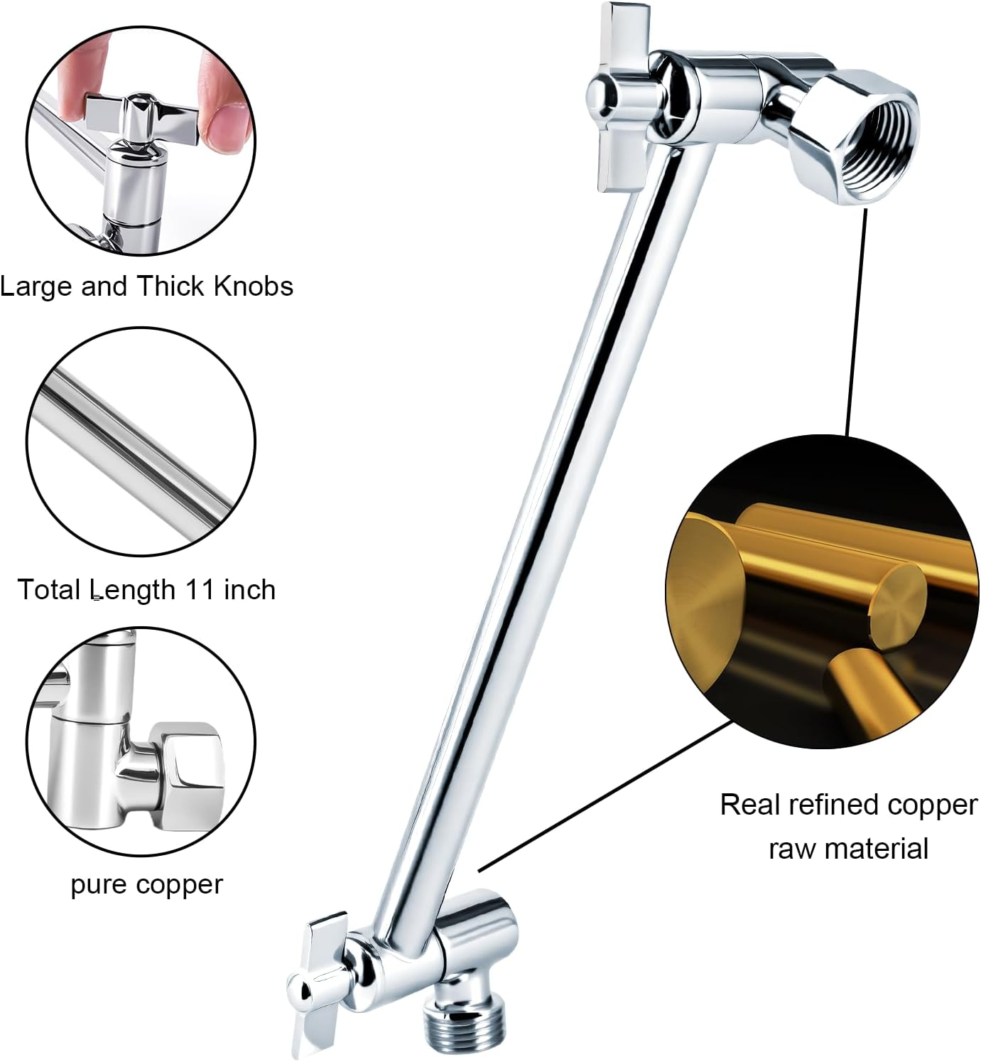 RLKDKJ Heavy Duty Adjustable Shower Arm – 11 Inch Brass