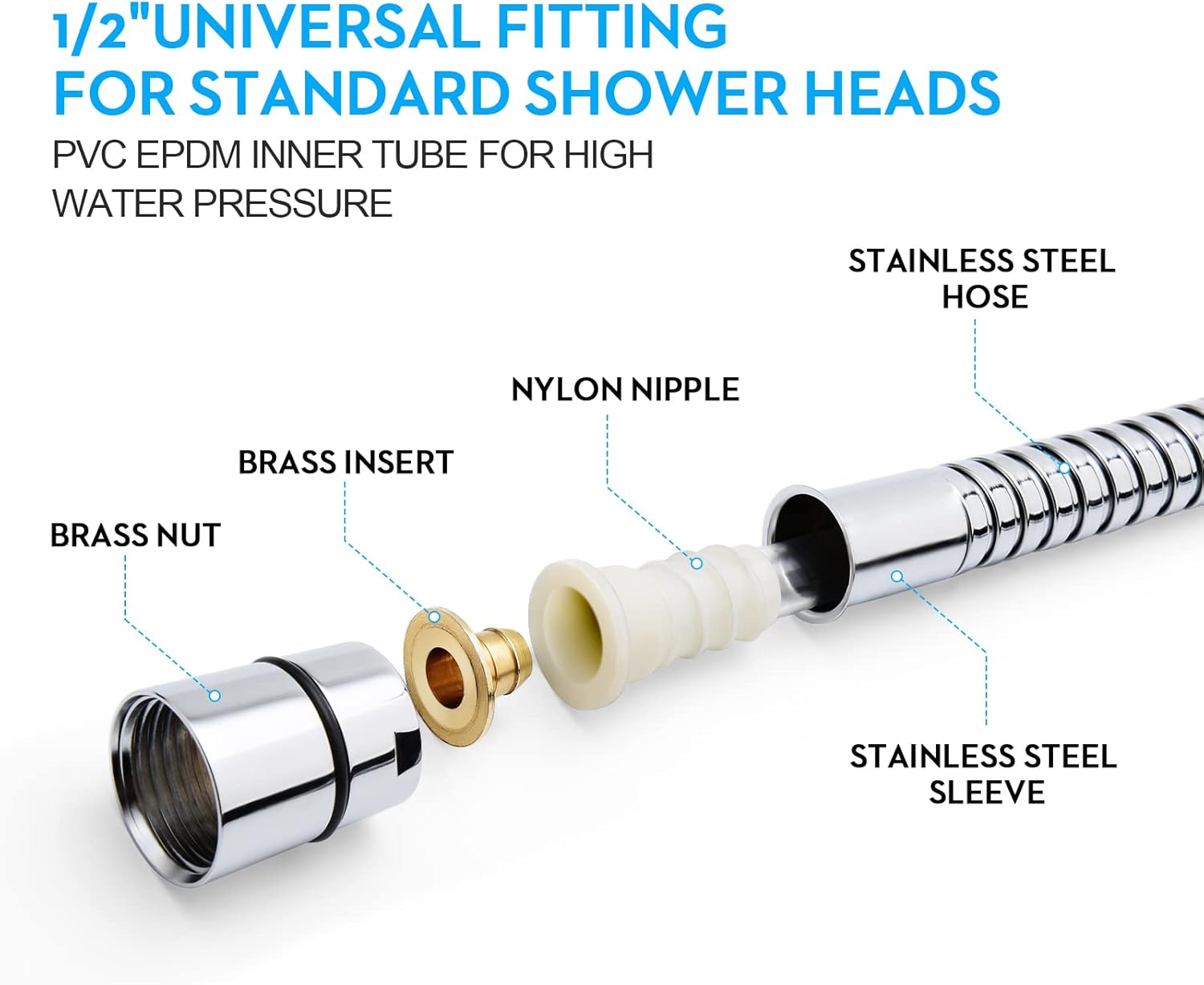 Solid pick if you want a more twist-resistant shower hose for smoother handheld use.