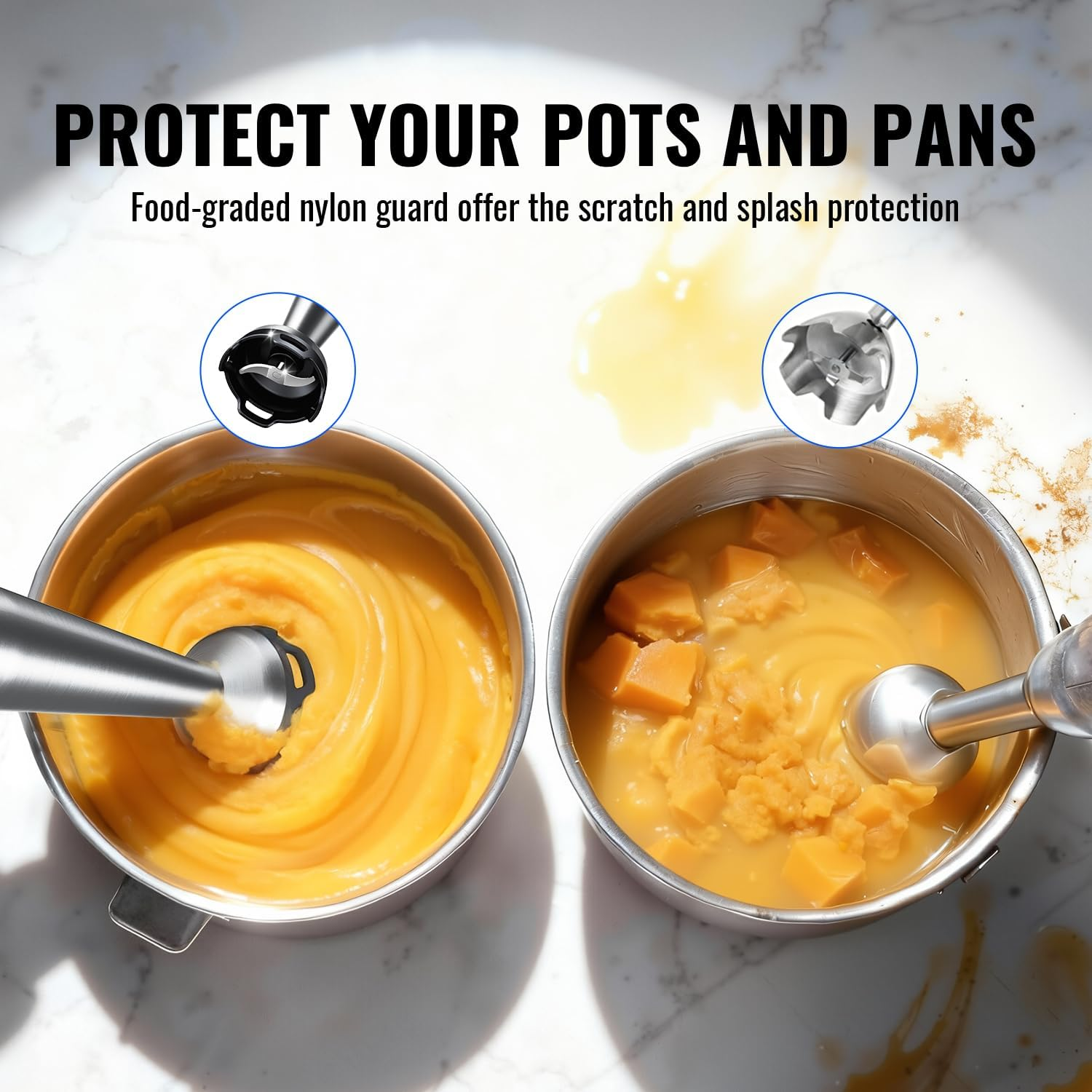 Also check the shaft material and blade guard. Stainless steel shafts and scratch-resistant guards are more durable and safer for use in hot pots and pans. Dishwasher-safe parts make cleanup much easier.